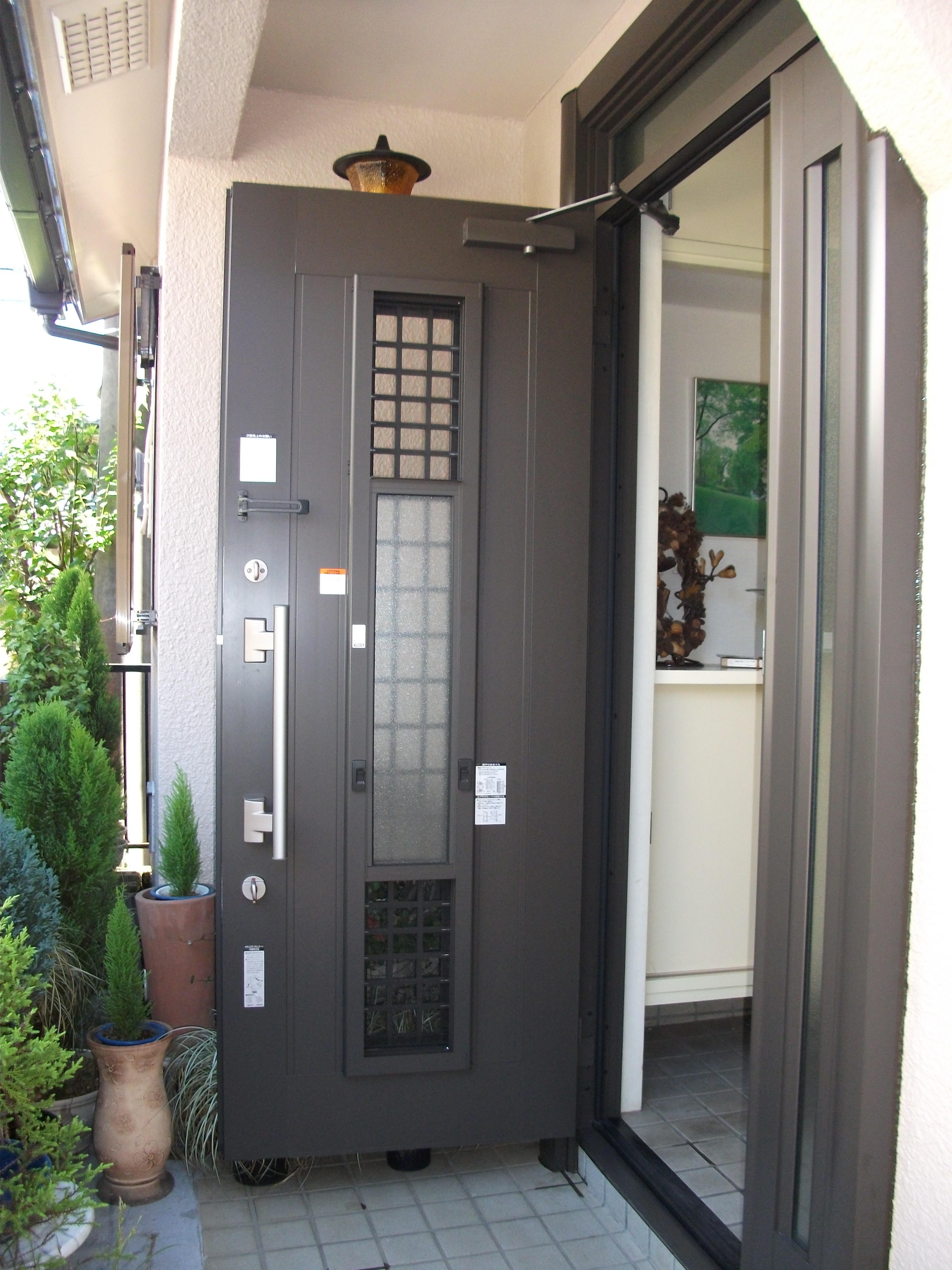 玄関ドアを新しいものに交換させていただきました。最新のドアですので、見た目のデザインだけでなく、鍵が上下2ロックになったり